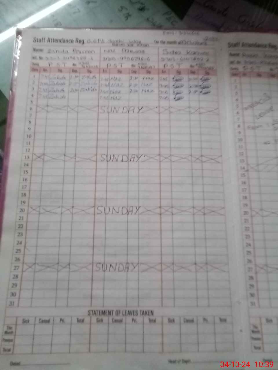 | 31**** | Ra**** Ko**** | PST | Regular | 0 | 0 | 0 | 0 | 0 | 0 | 0 | 0 | 0 | Medical |
