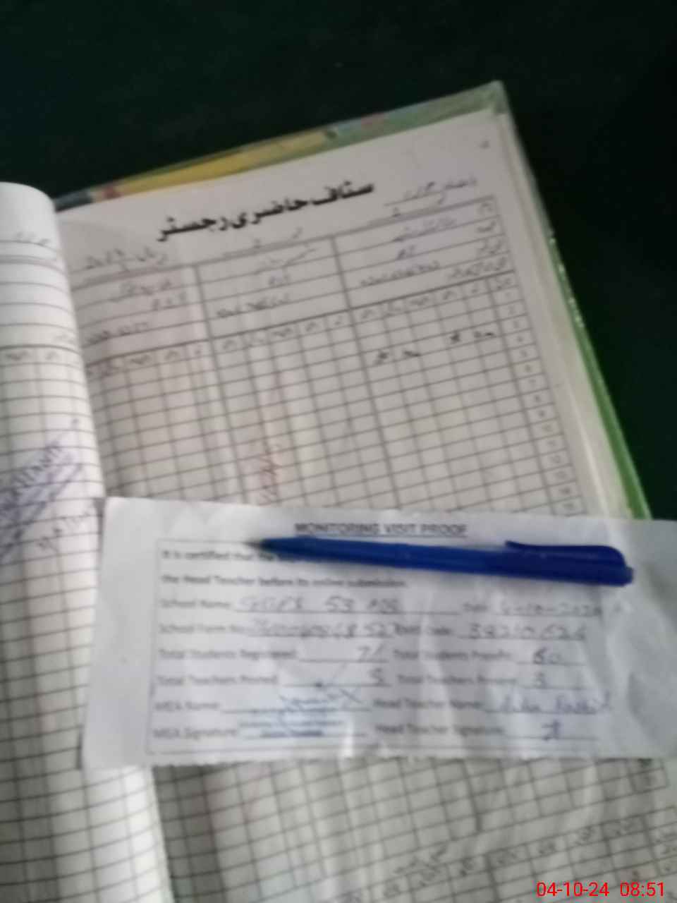 | Attendance Register | Head Teacher | MEA with School | Visit Proof |