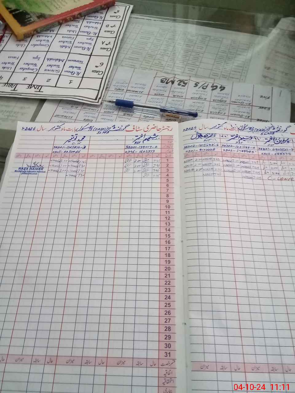 | CNIC | Full Name | Designation | R/C | Absence During Last Calender Month |