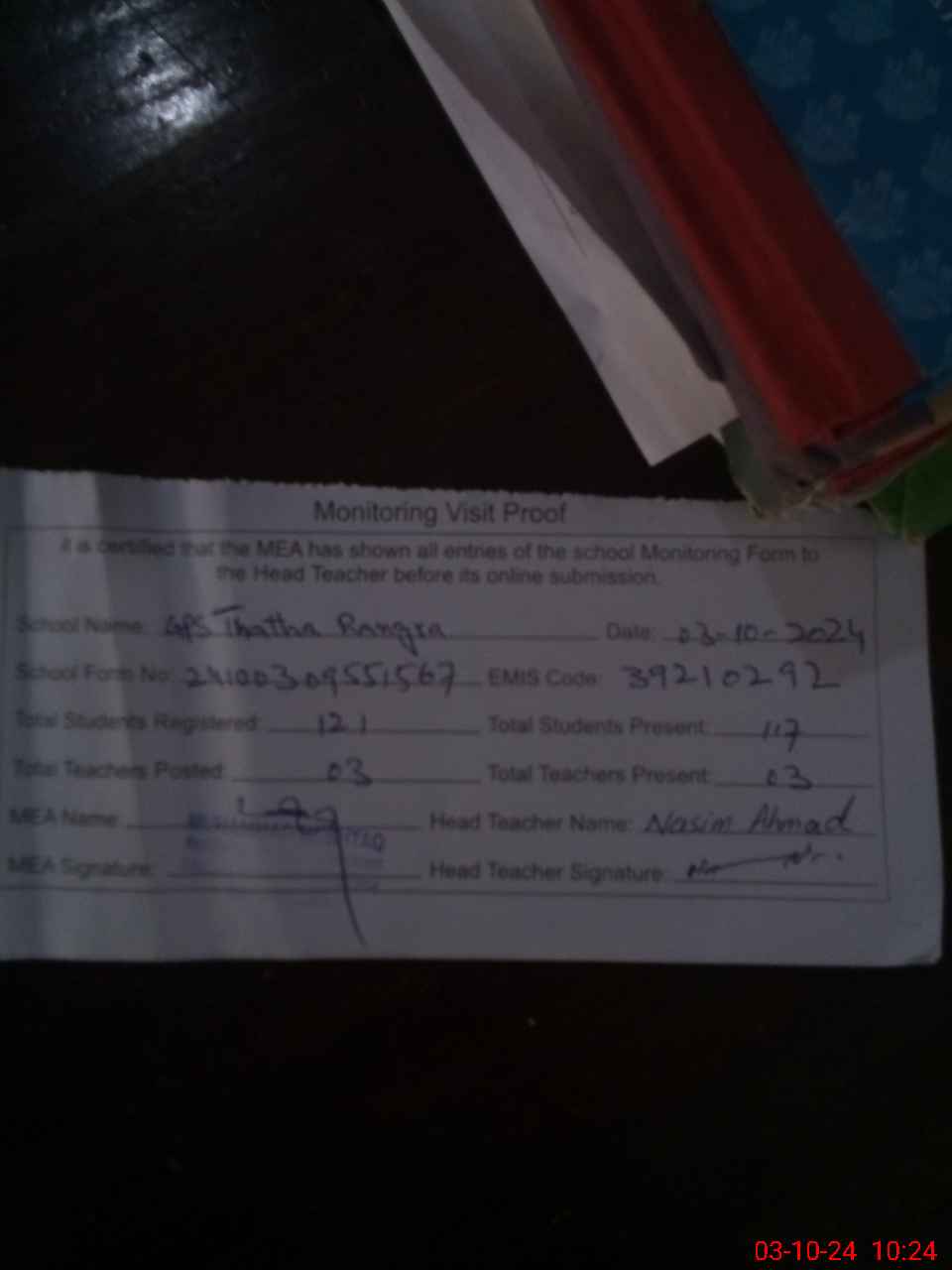 | EMIS Code: 39210292 | Name of School: GPS THATHAI RANGRAN P/O CHAK BEDI PAPATTAN | |||
