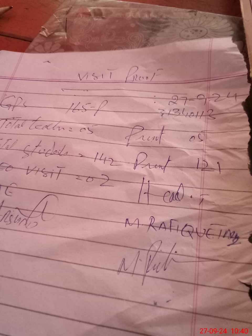 | Attendance Register | Head Teacher | MEA with School | Visit Proof |
