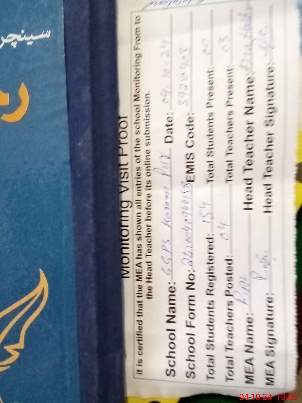 | EMIS Code: 39210403 | Name of School: GGPS KARAM PUR BHATTAIN | |||
