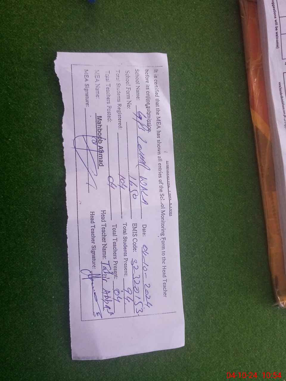 | EMIS Code: 32320153 | Name of School: GPS LOHAR WALA | |||