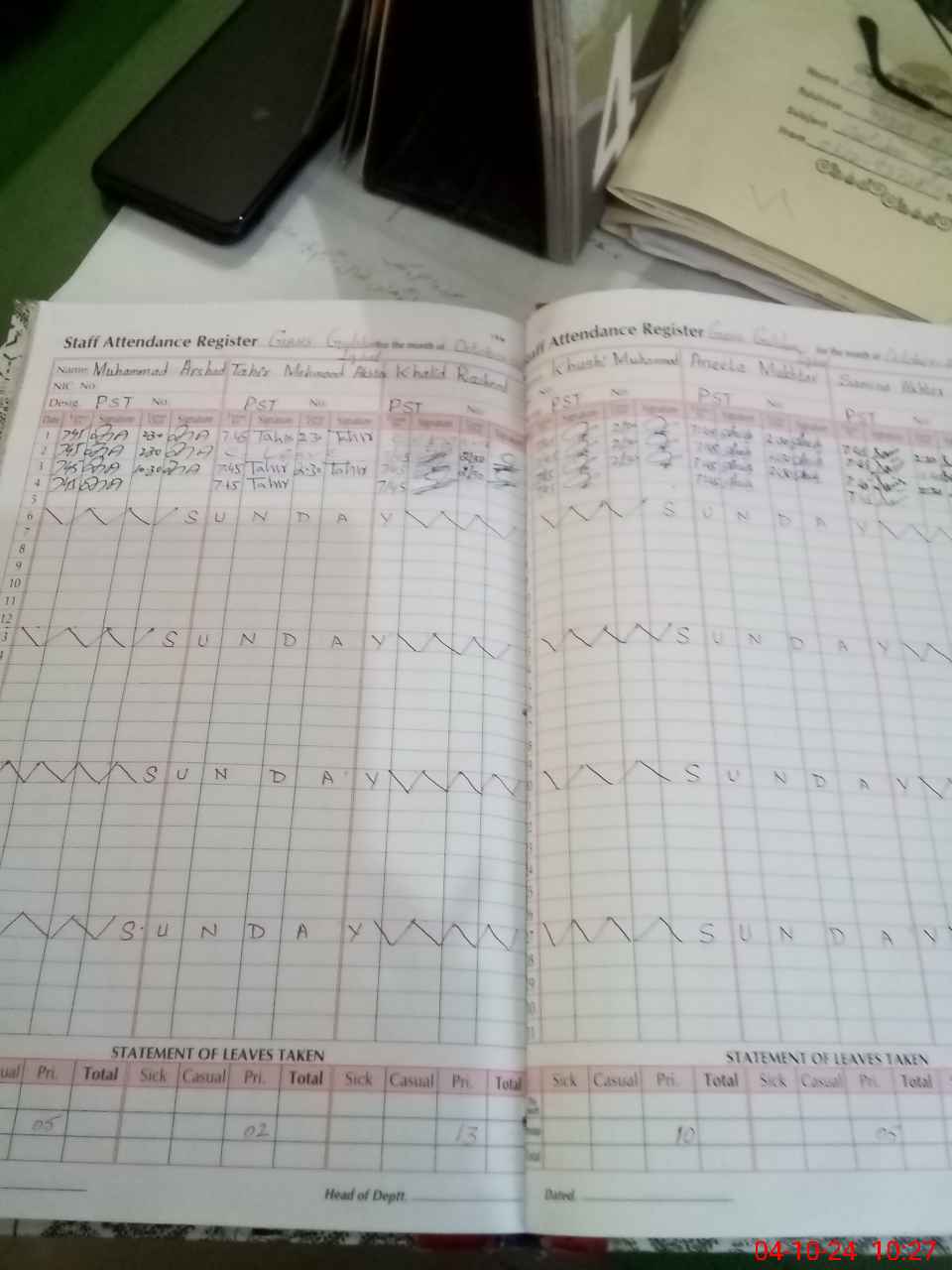 | Leave | Duty | Absent | Maternity | Medical | Ex- Pak |