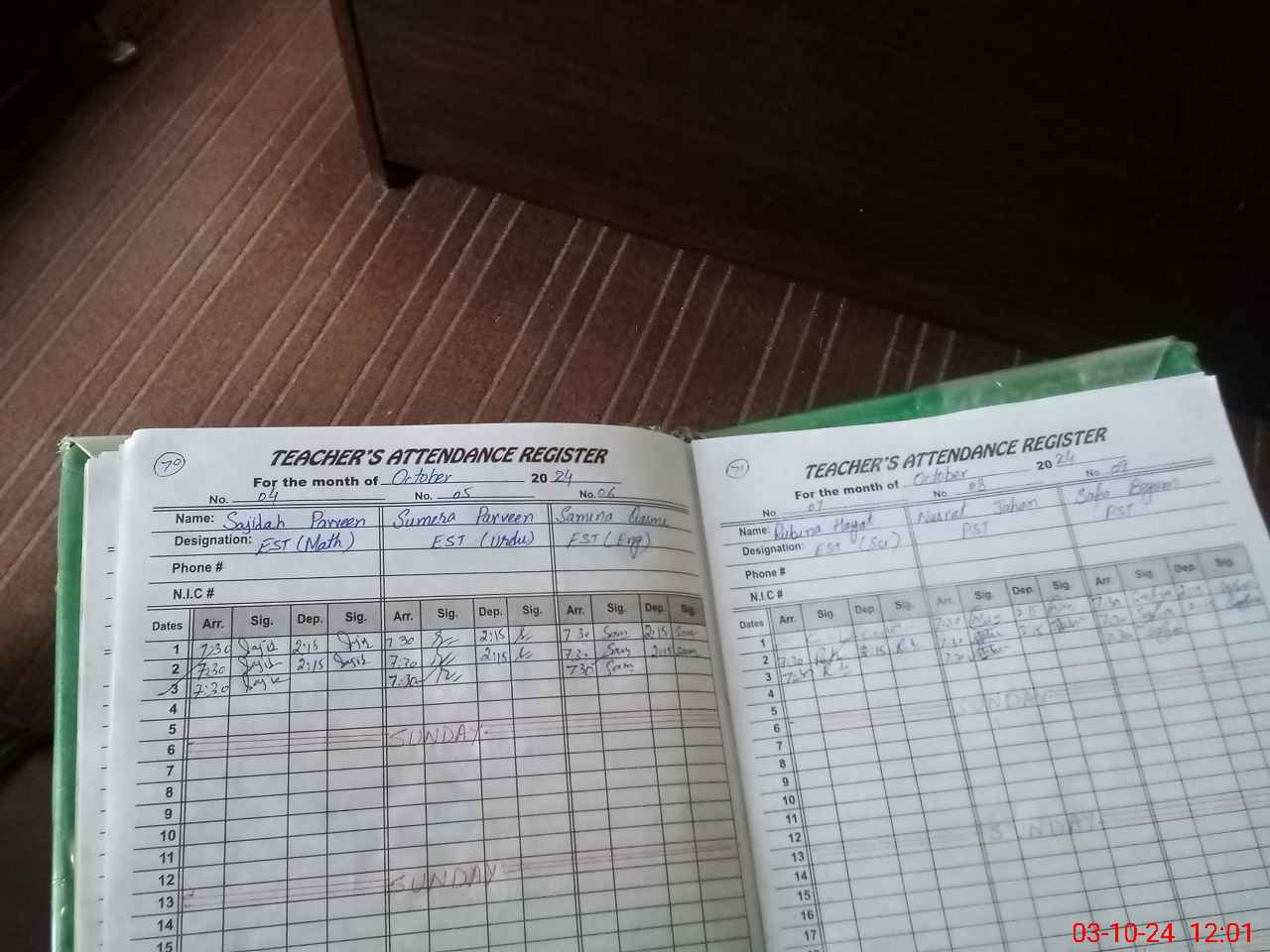 | CNIC | Full Name | Designation | R/C | Absence During Last Calender Month |