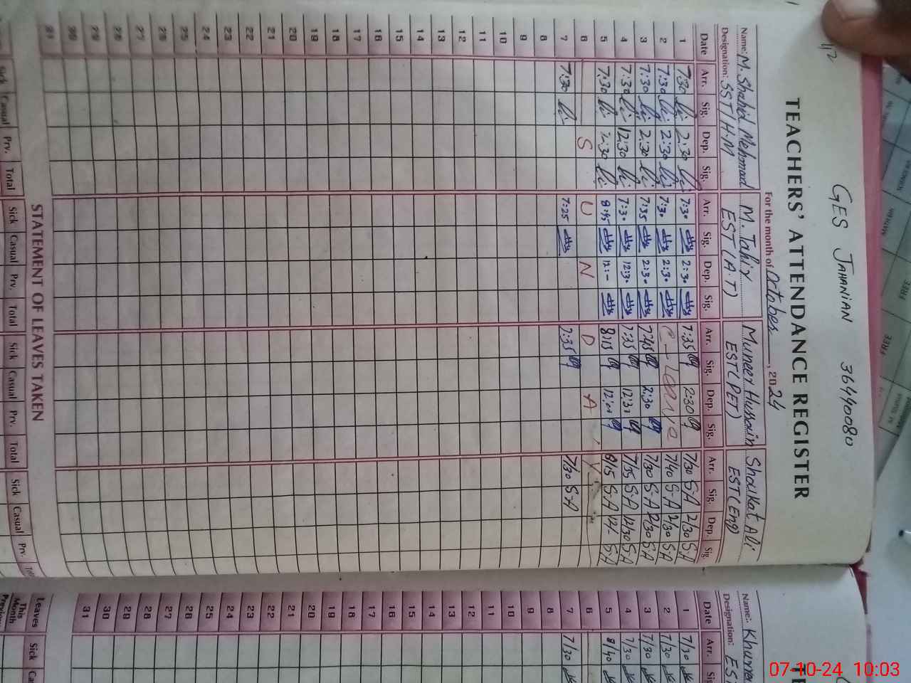 | Name: Sy**** Af**** Hu**** Sh**** Designation: (School Headmaster's/Headmistress's) S.S.T.(Arts) Phone/Cell Number: 03**** |