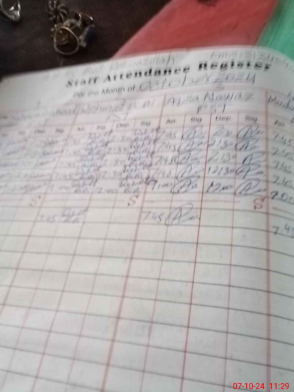 | CNIC | Full Name | Designation | R/C | Absence During Last Calender Month |