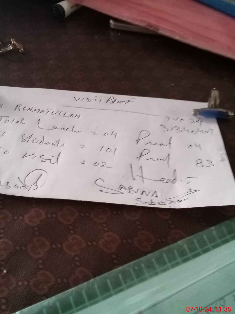 | Attendance Register | Head Teacher | MEA with School | Visit Proof |