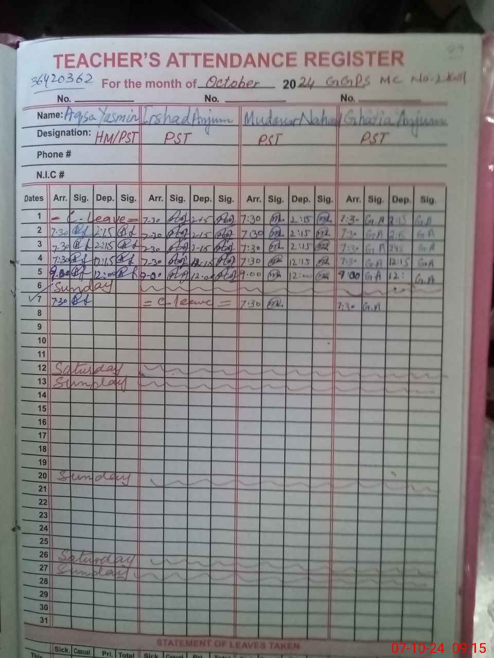 | Name: AQ**** YA**** Designation: (School Headmaster's/Headmistress's) PST Phone/Cell Number: 03**** |