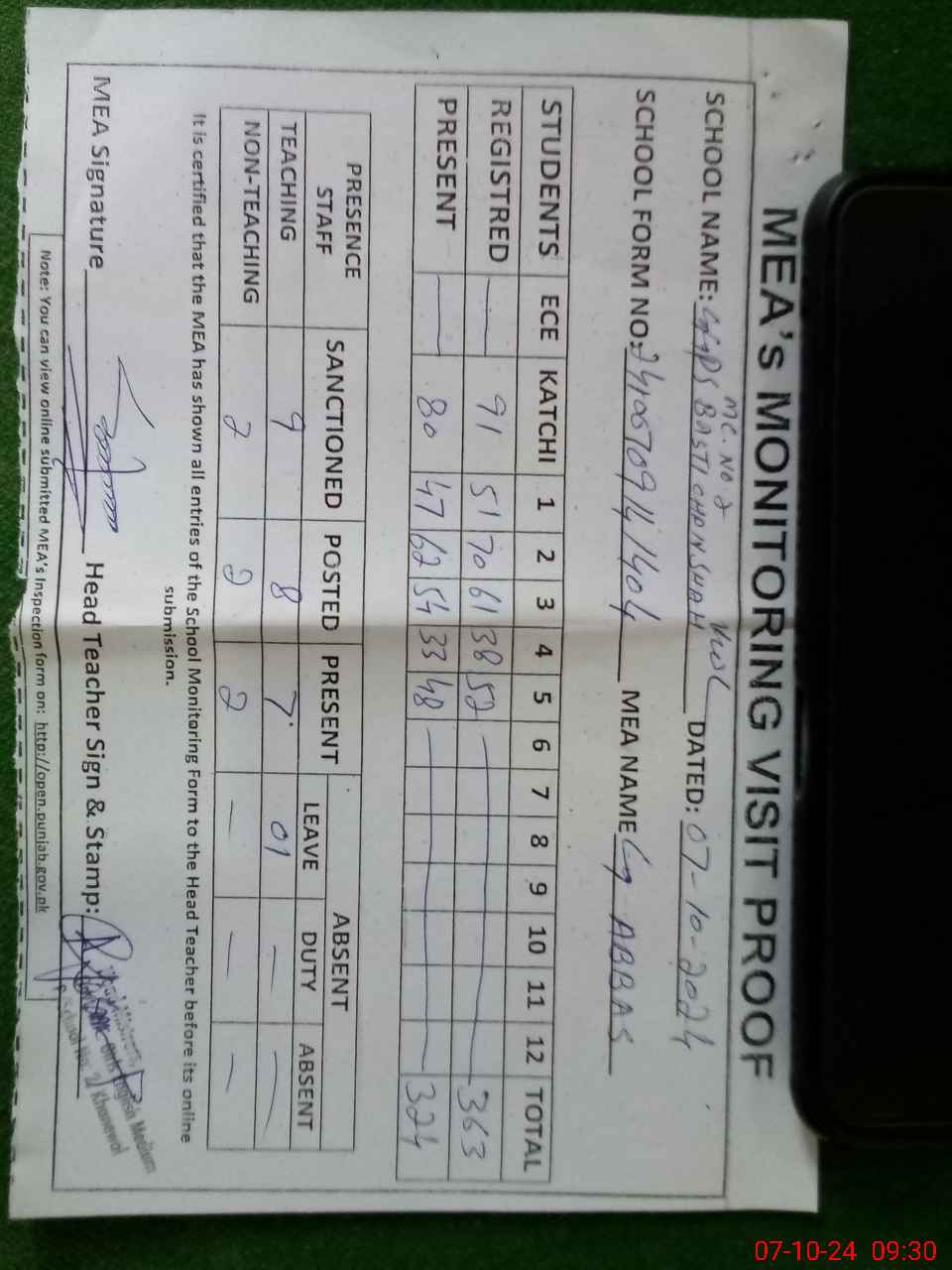 | Certified that this School was Inspected by the Undersigned MEA/DMO Today and the Information Stated Above is as Per Record. | |||||