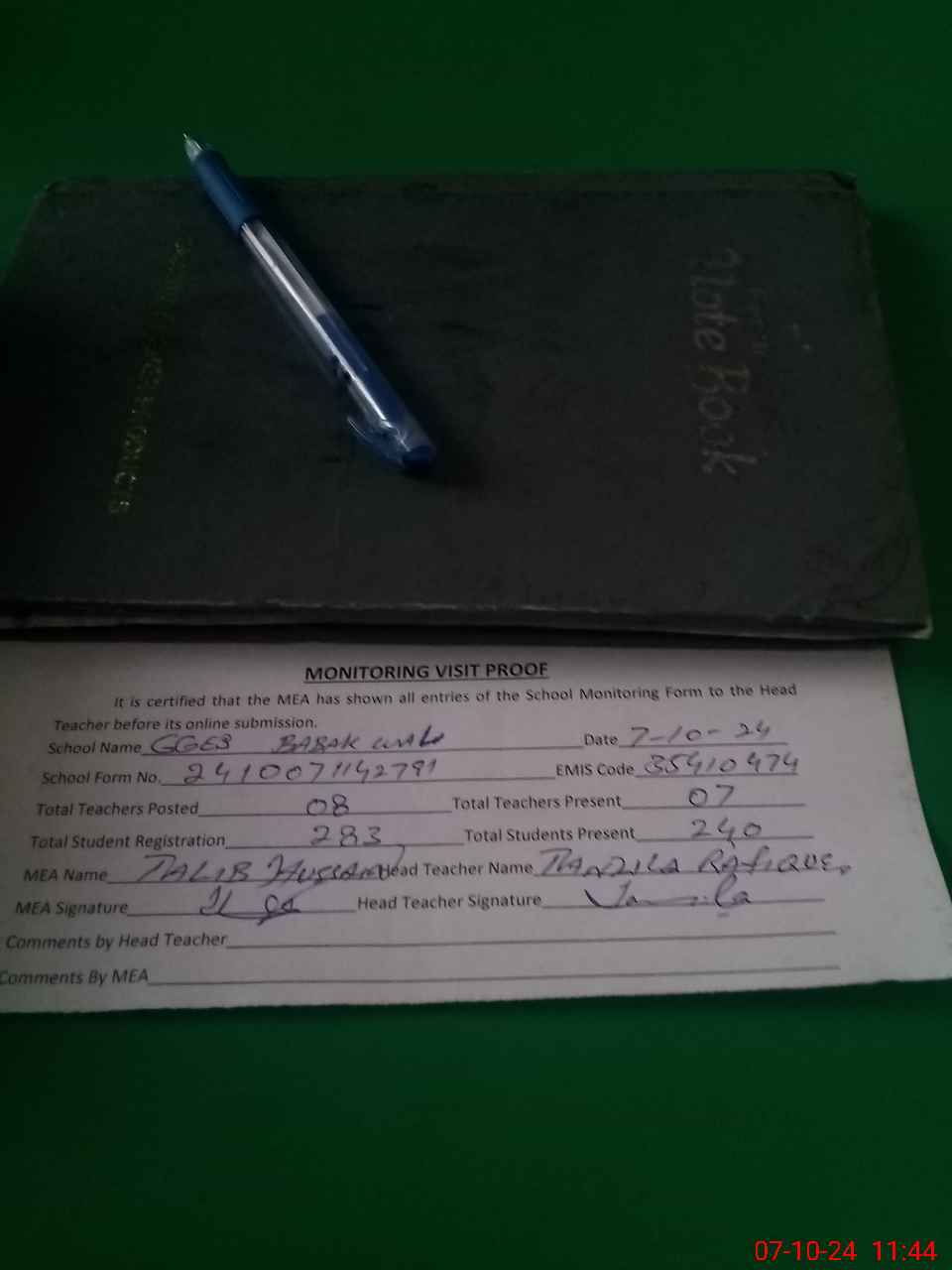 | Certified that this School was Inspected by the Undersigned MEA/DMO Today and the Information Stated Above is as Per Record. | |||||