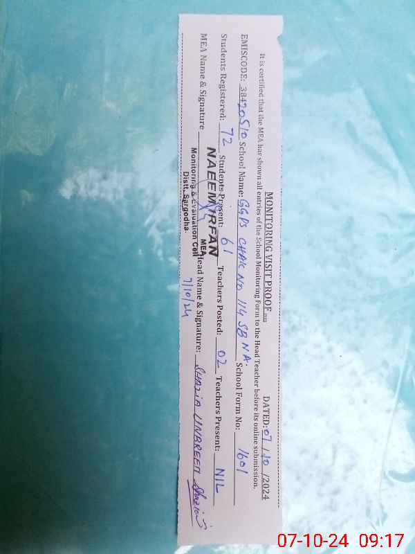 | EMIS Code: 38420510 | Name of School: GGPS CHAK NO.114 SB NEW ABADI | |||