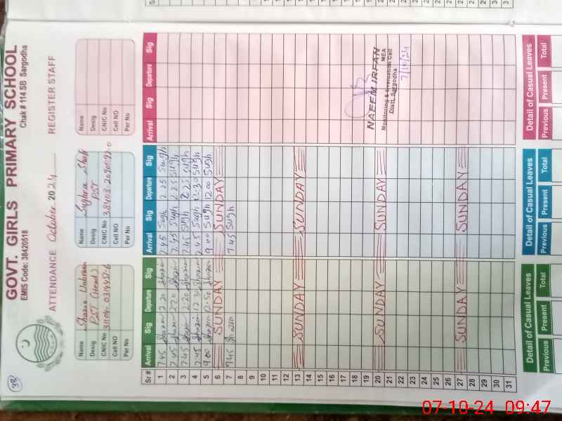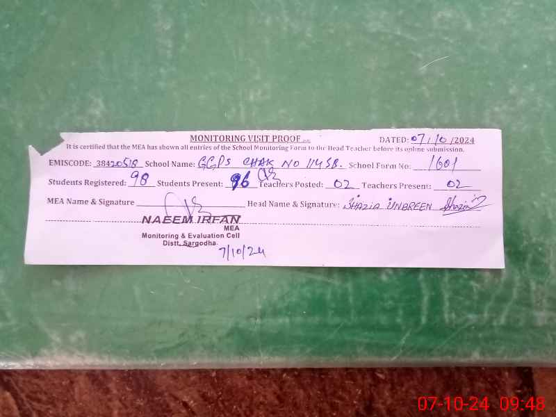 | EMIS Code: 38420518 | Name of School: GGPS CHAK NO.114 SB | |||