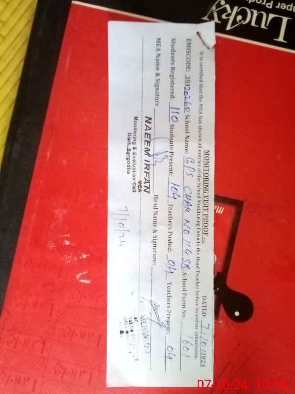 | EMIS Code: 38420260 | Name of School: GPS CHAK NO.114 SB | |||