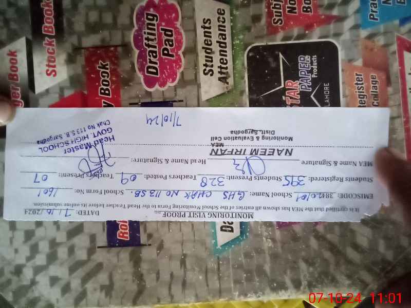 | EMIS Code: 38420101 | Name of School: GHS CHAK NO.113 SB | |||