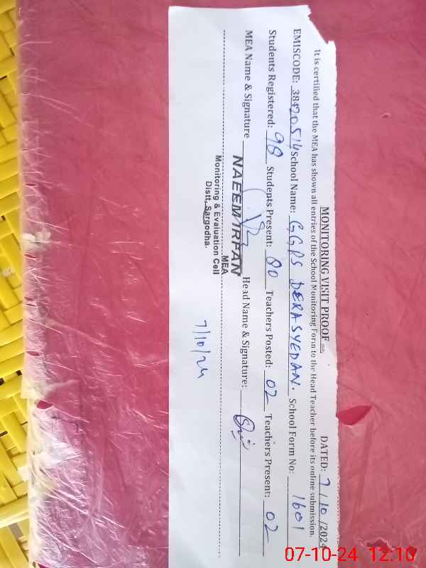 | EMIS Code: 38420514 | Name of School: GGPS DERA SYEDAN | |||