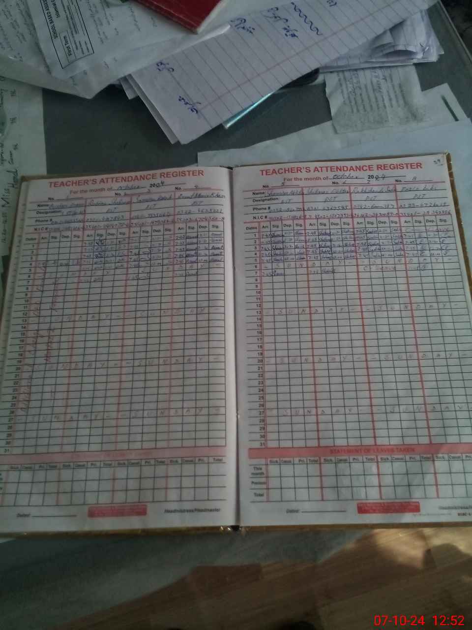 | CNIC | Full Name | Designation | R/C | Absence During Last Calender Month |