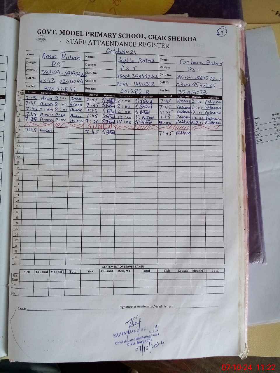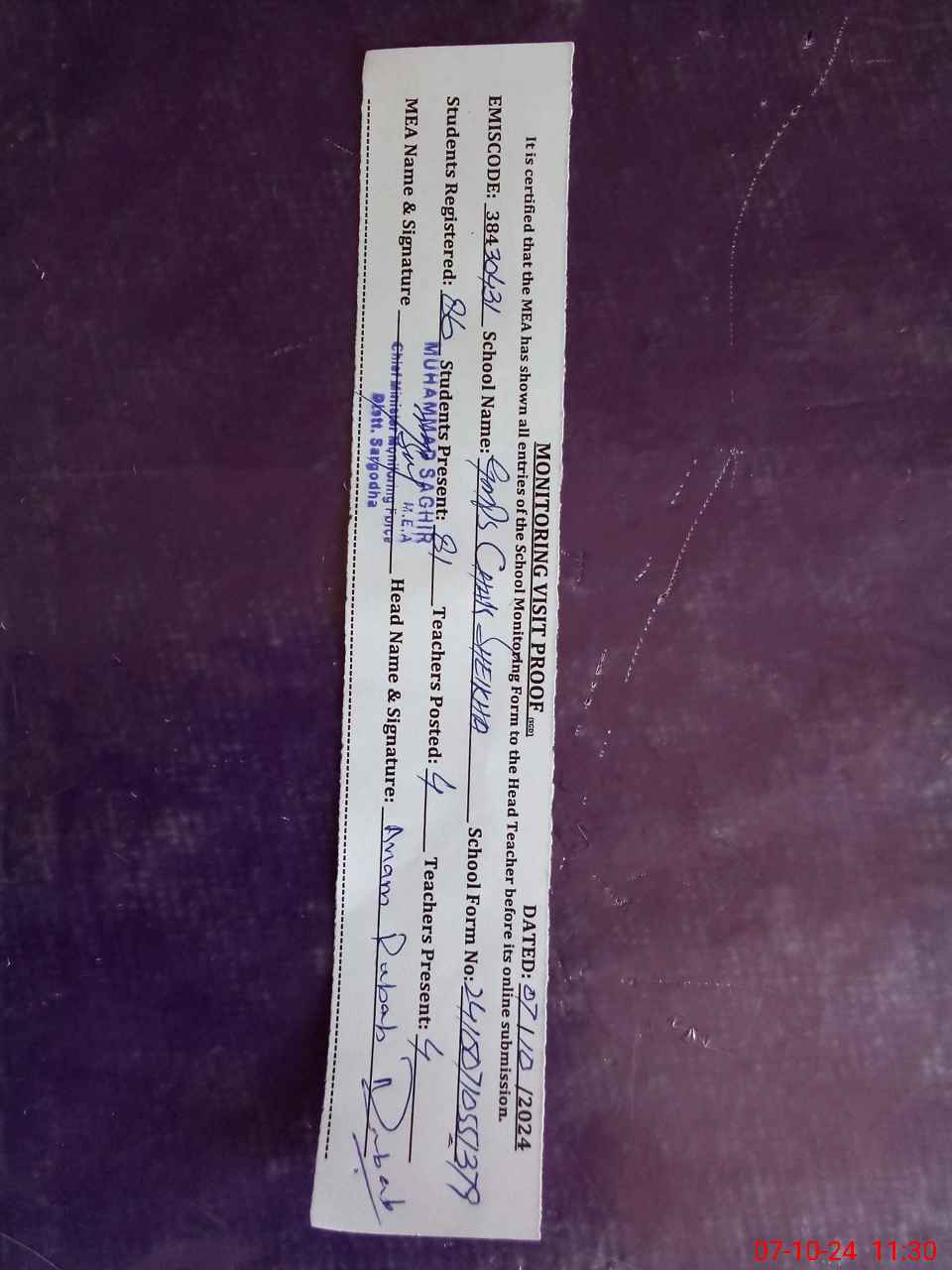 | EMIS Code: 38430431 | Name of School: GMPS CHAK SHEIKHA | |||
