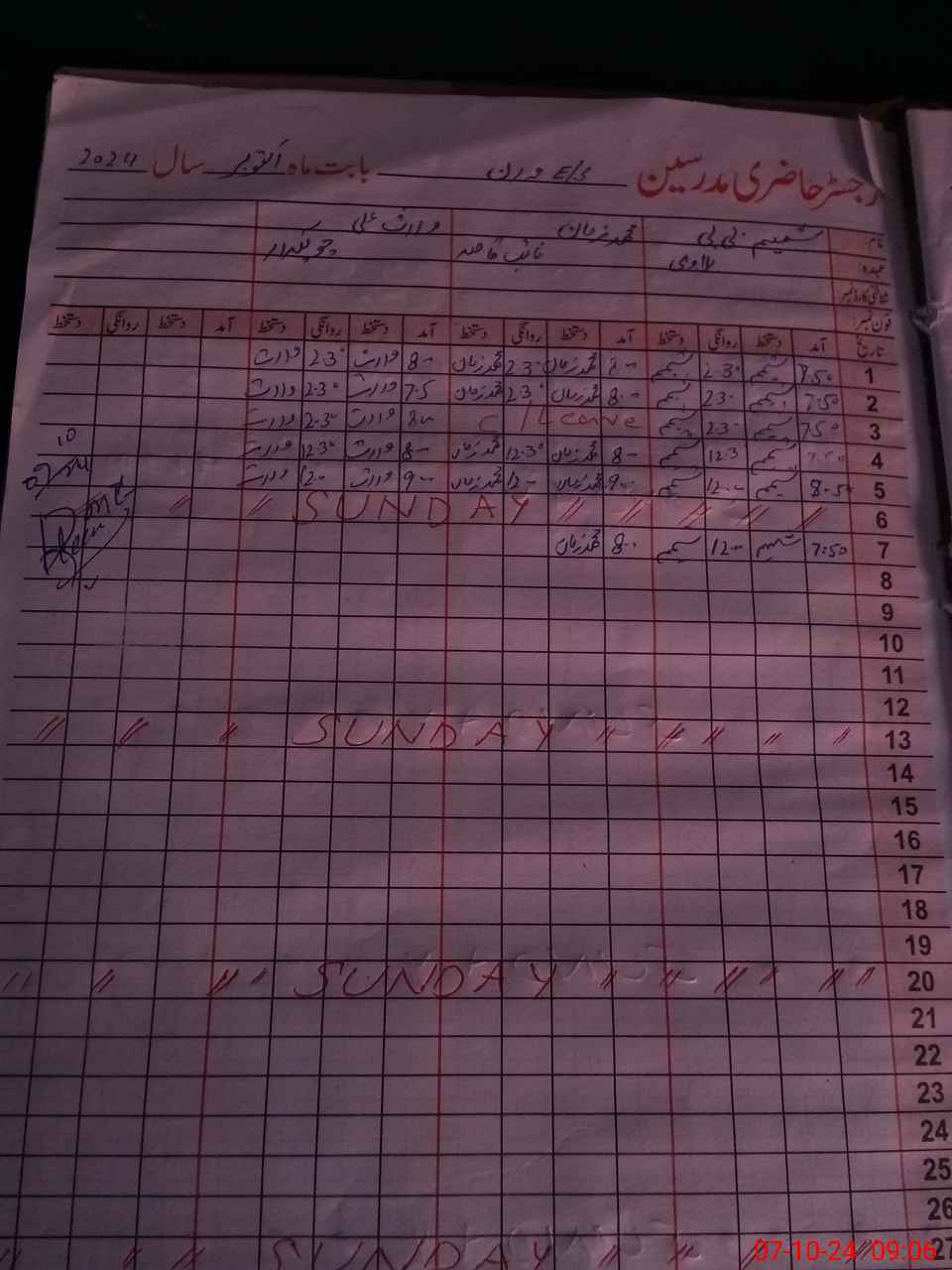 | CNIC | Full Name | Designation | R/C | Absence During Last Calender Month |
