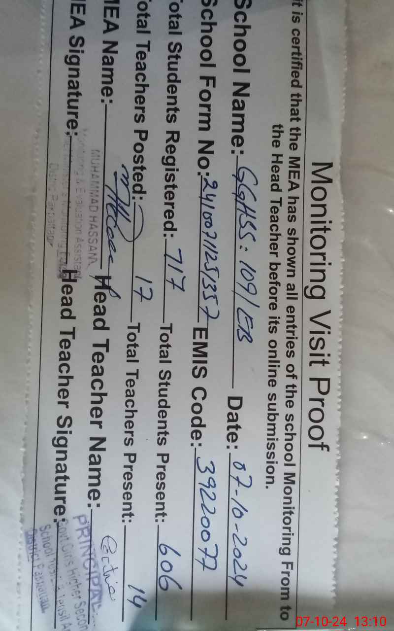 | EMIS Code: 39220077 | Name of School: GGHSS 109 EB | |||