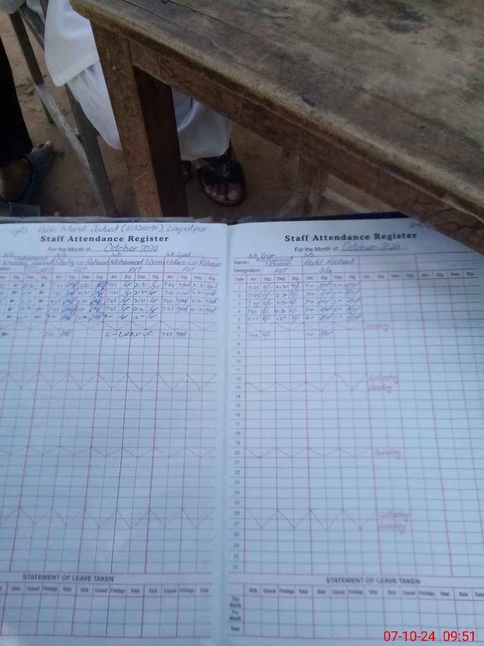 | CNIC | Full Name | Designation | R/C | Absence During Last Calender Month |