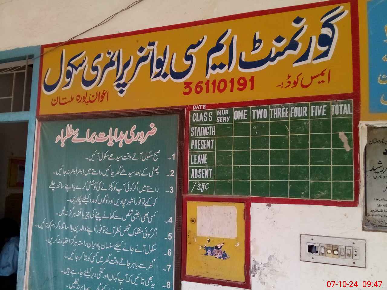 | EMIS Code: 36110191 | Name of School: GPS MC AWAN PURA | |||