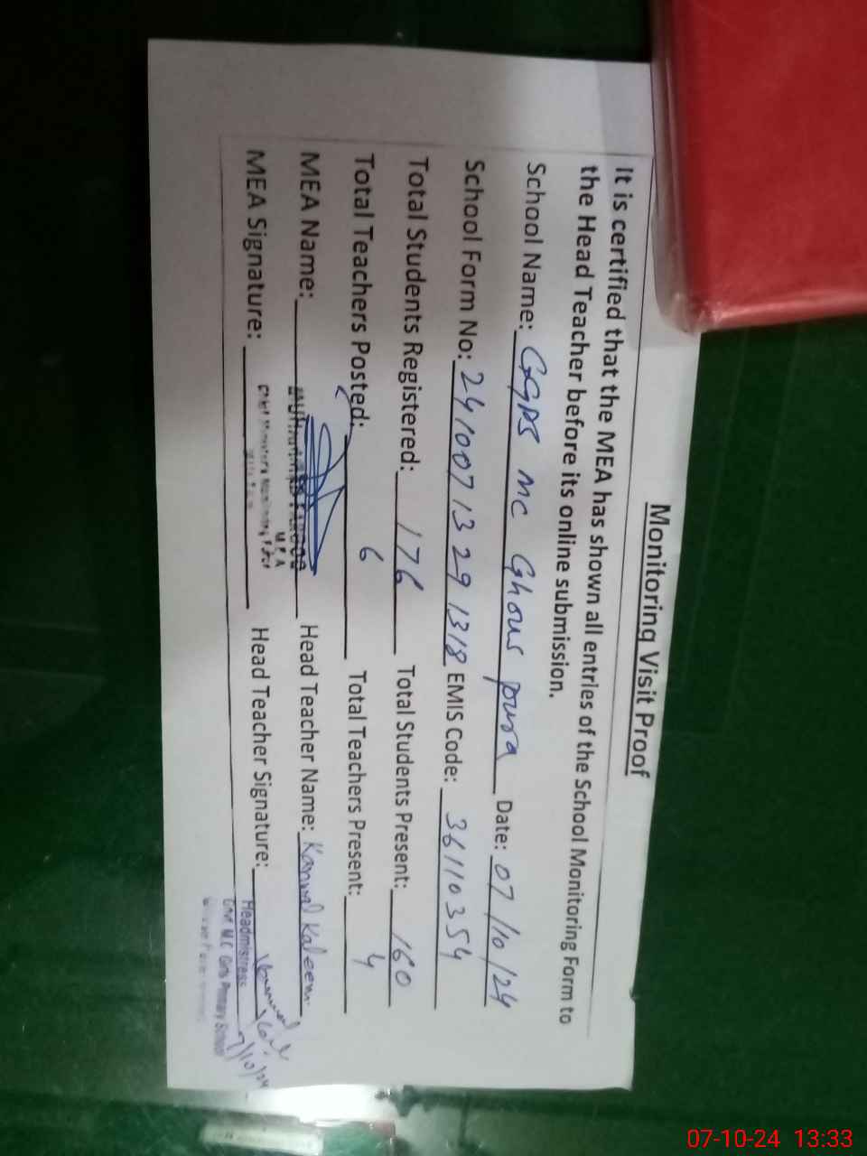 | EMIS Code: 36110354 | Name of School: GGPS MC GHOUS PURA | |||