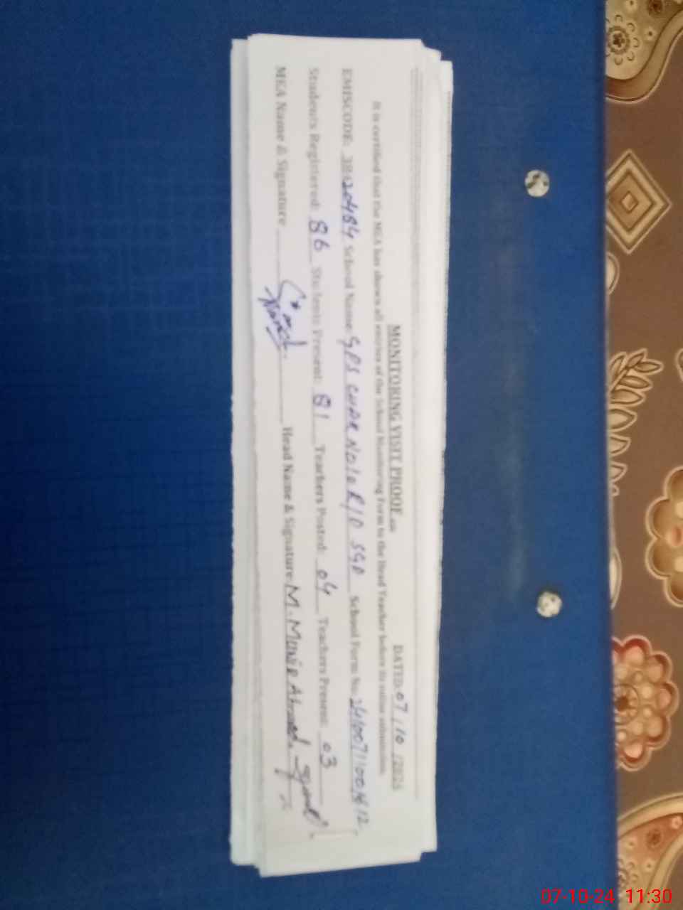 | Name: MU**** MU**** Designation: (School Headmaster's/Headmistress's) PTC Phone/Cell Number: 03**** 60**** |