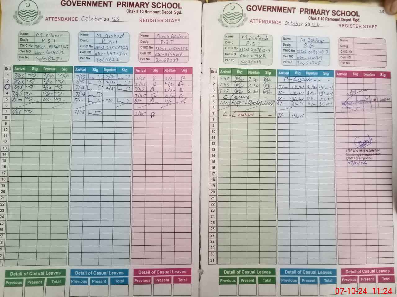 | CNIC | Full Name | Designation | R/C | Absence during last cal. month |