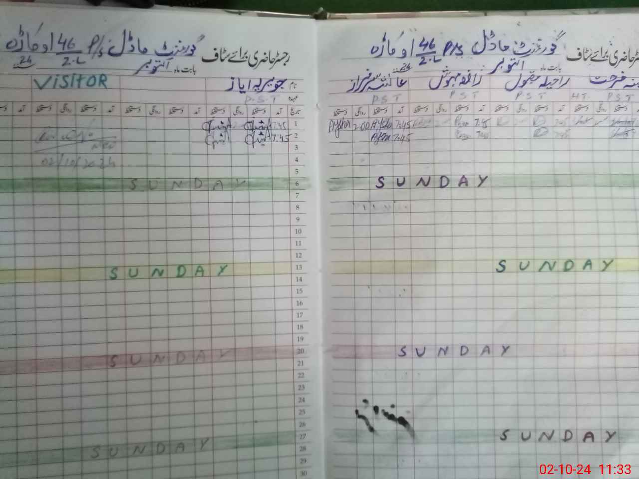 | CNIC | Full Name | Designation | R/C | Absence During Last Calender Month |