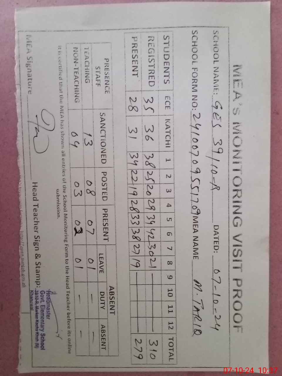 | EMIS Code: 36420240 | Name of School: GES 39/10-R, KACHA KHUH | |||