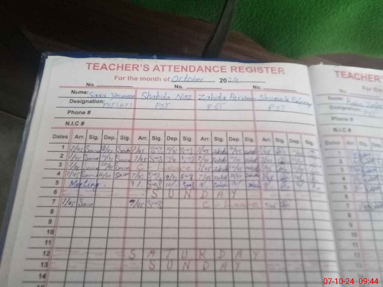 | Name: SA**** YA**** Designation: (School Headmaster's/Headmistress's) PST Phone/Cell Number: 03**** |
