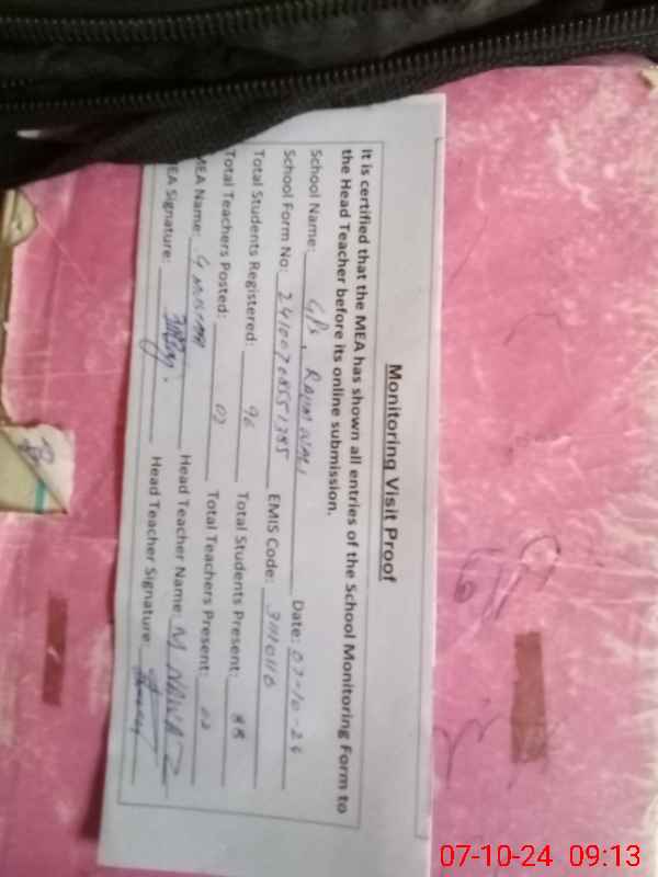 | Certified that this School was Inspected by the Undersigned MEA/DMO Today and the Information Stated Above is as Per Record. | |||||