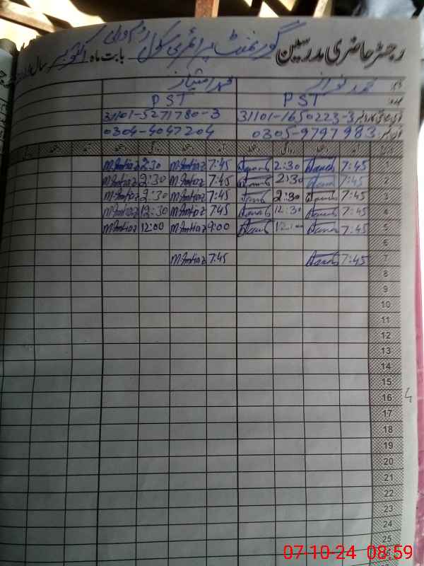 | Name: MU**** NA**** Designation: (School Headmaster's/Headmistress's) PTC Phone/Cell Number: 03**** |