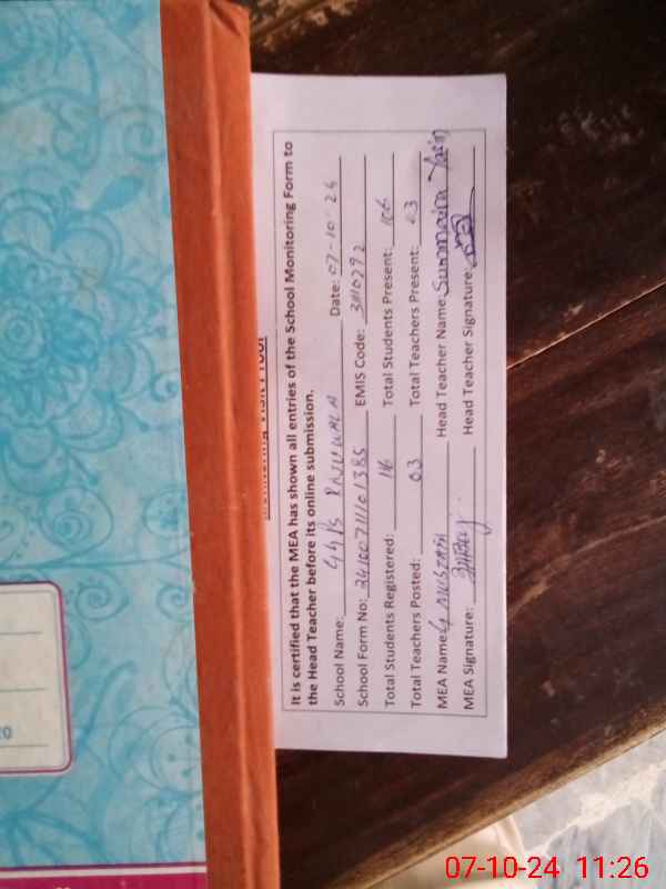 | Certified that this School was Inspected by the Undersigned MEA/DMO Today and the Information Stated Above is as Per Record. | |||||