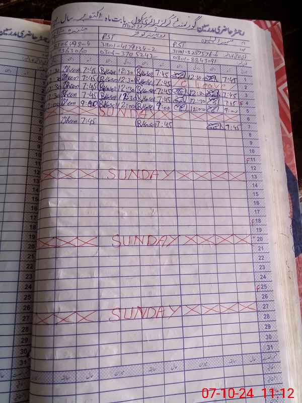 | Name: SU**** YA**** Designation: (School Headmaster's/Headmistress's) PST (HT) Phone/Cell Number: 03**** |