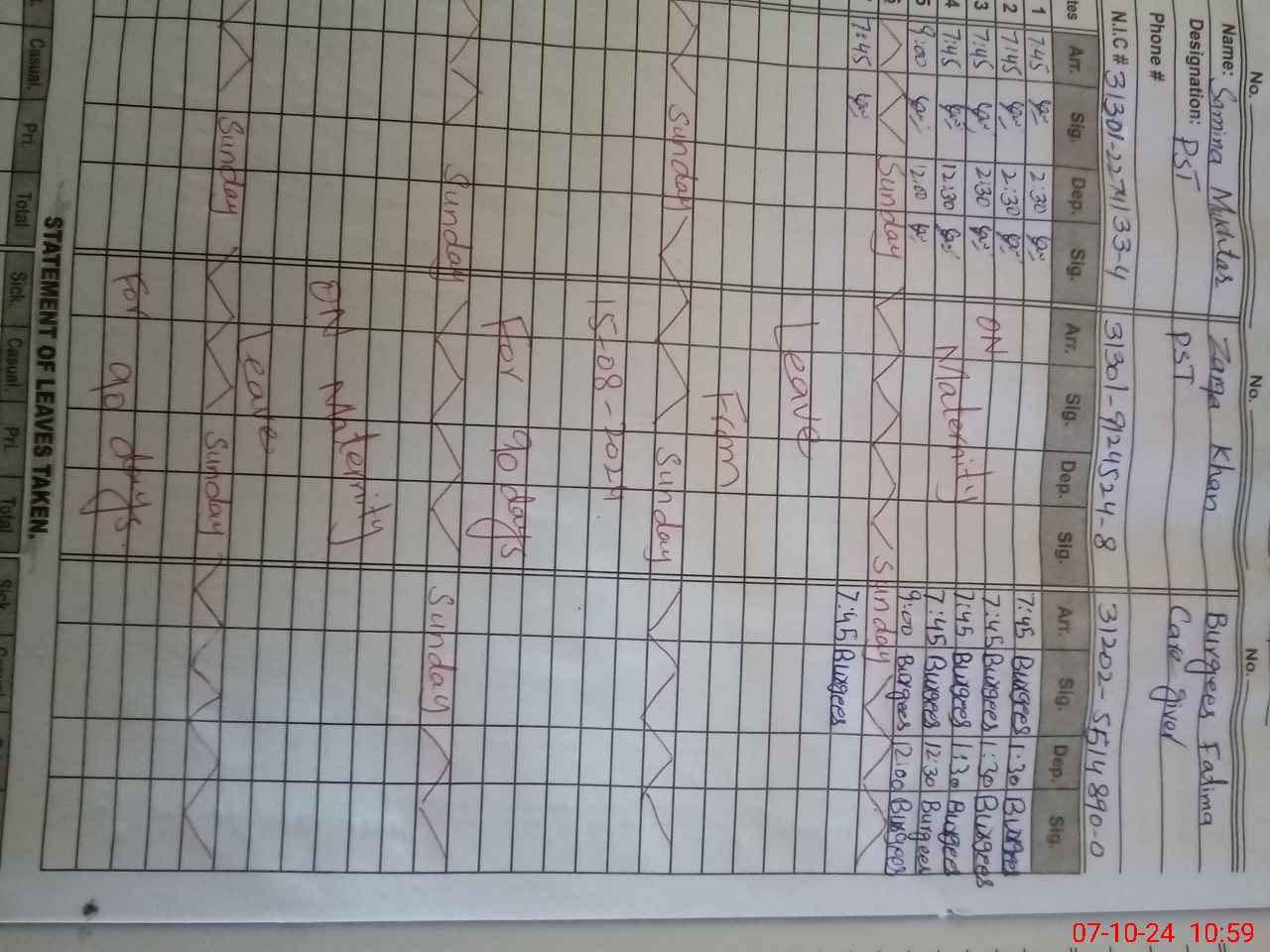 | 31**** | Za**** Kh**** | ESE | Contract | 0 | 0 | 0 | 0 | 0 | 0 | 0 | 0 | 0 | Maternity |