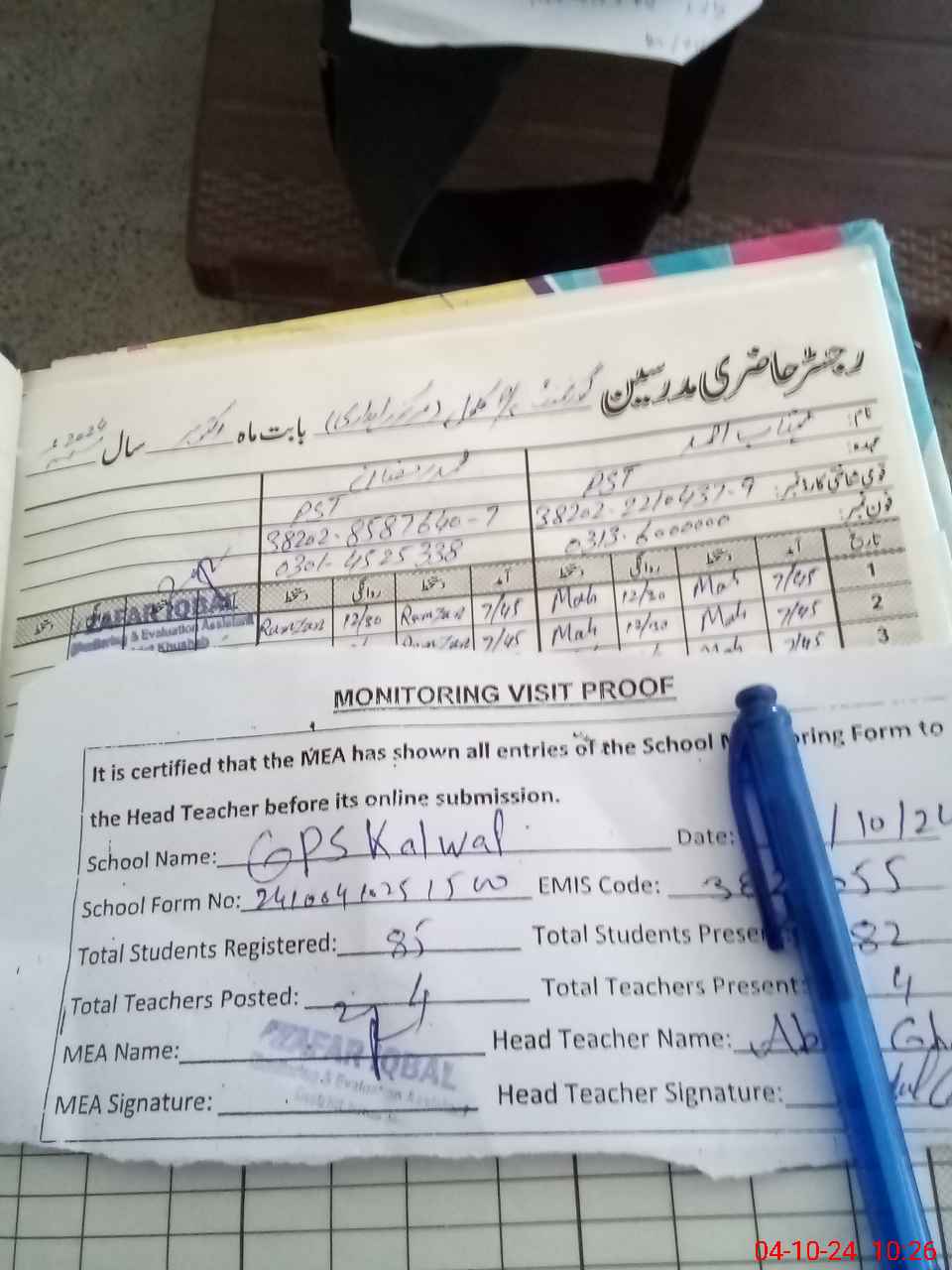 | EMIS Code: 38220055 | Name of School: GPS KALWAL | |||