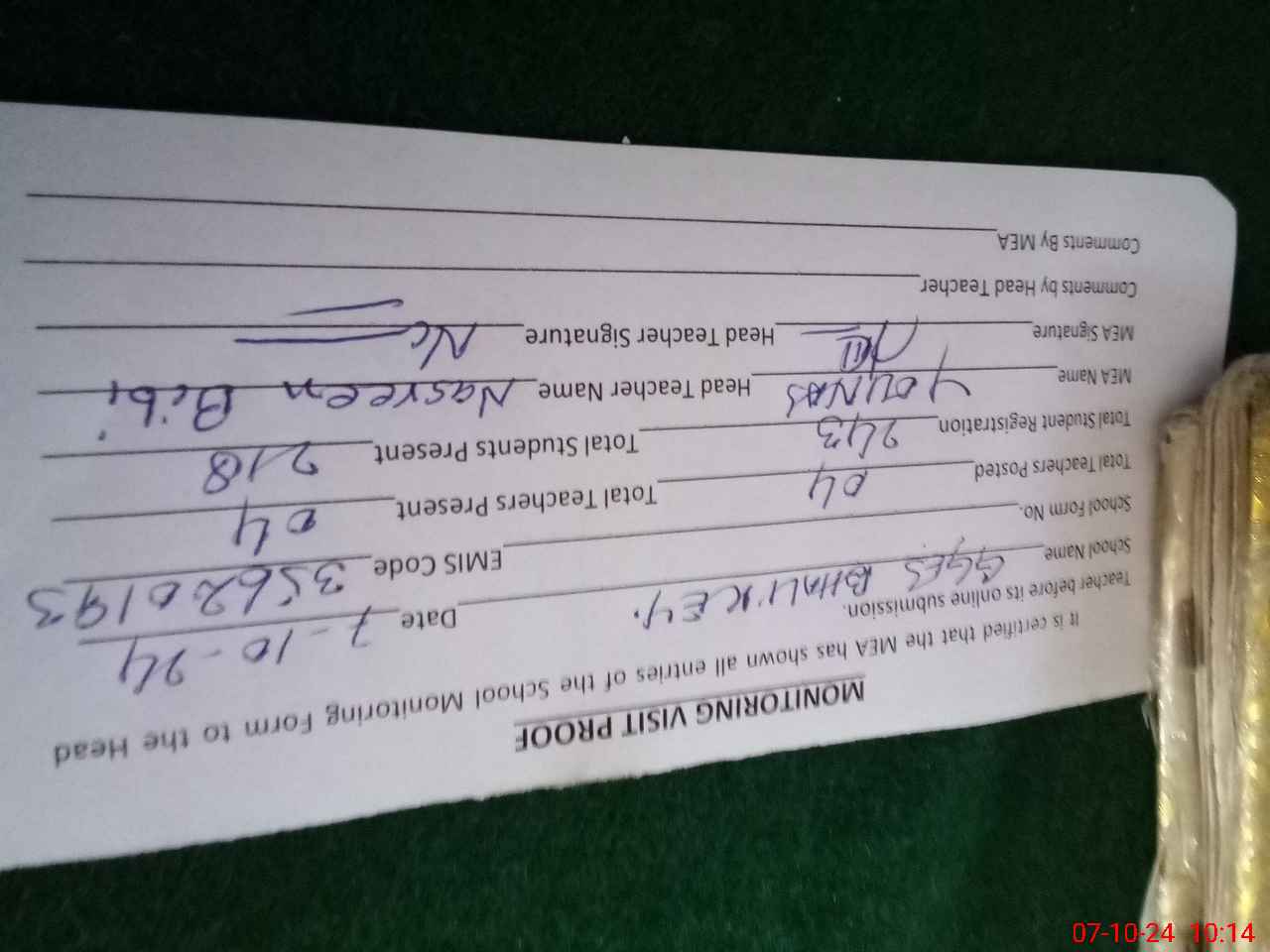 | Name: NA**** RE**** Designation: (School Headmaster's/Headmistress's) SSE ENG Phone/Cell Number: 03**** |