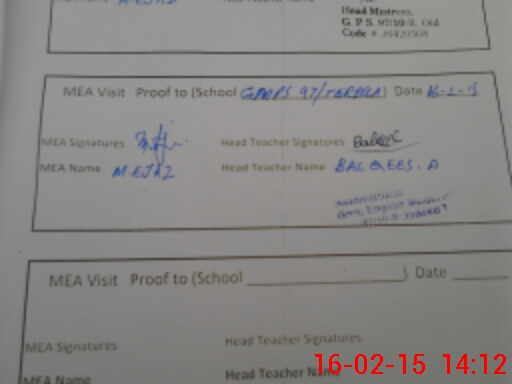 | Attendance Register | Head Teacher | MEA with School | Visit Proof |