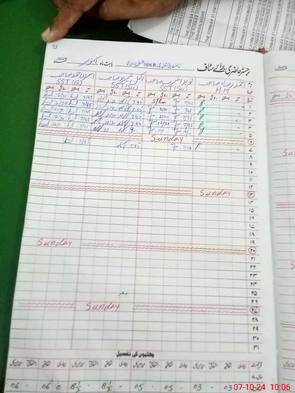 | CNIC | Full Name | Designation | R/C | Absence During Last Calender Month |