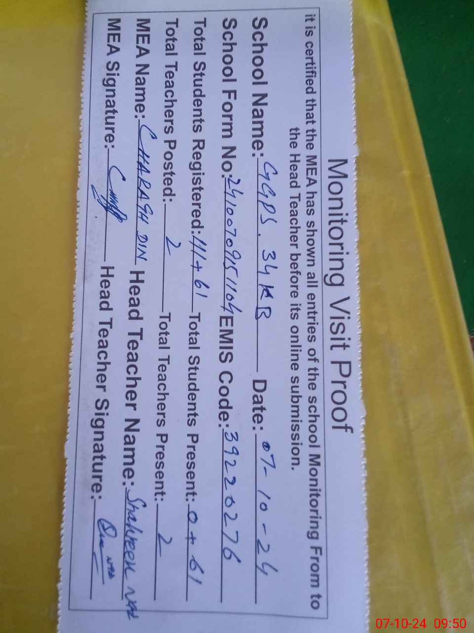 | EMIS Code: 39220376 | Name of School: GGPS 34 KB | |||