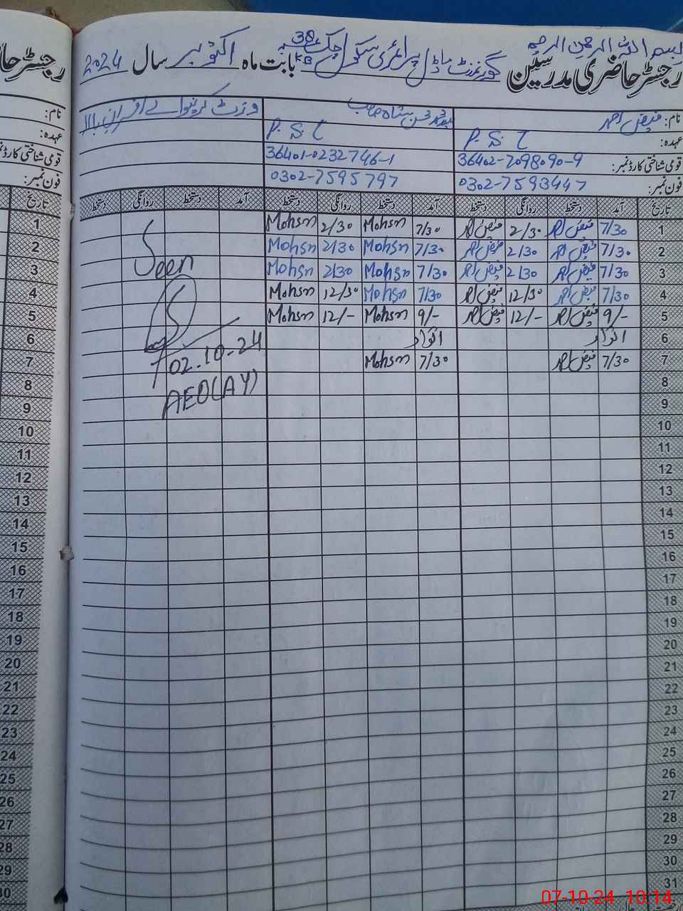 | Name: FA**** AH**** Designation: (School Headmaster's/Headmistress's) PST Phone/Cell Number: 03**** |