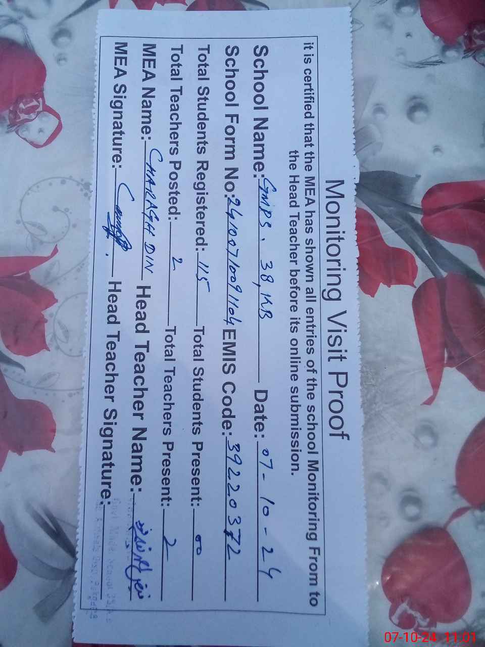 | EMIS Code: 39220372 | Name of School: GMPS CHAK NO 38 KB | |||