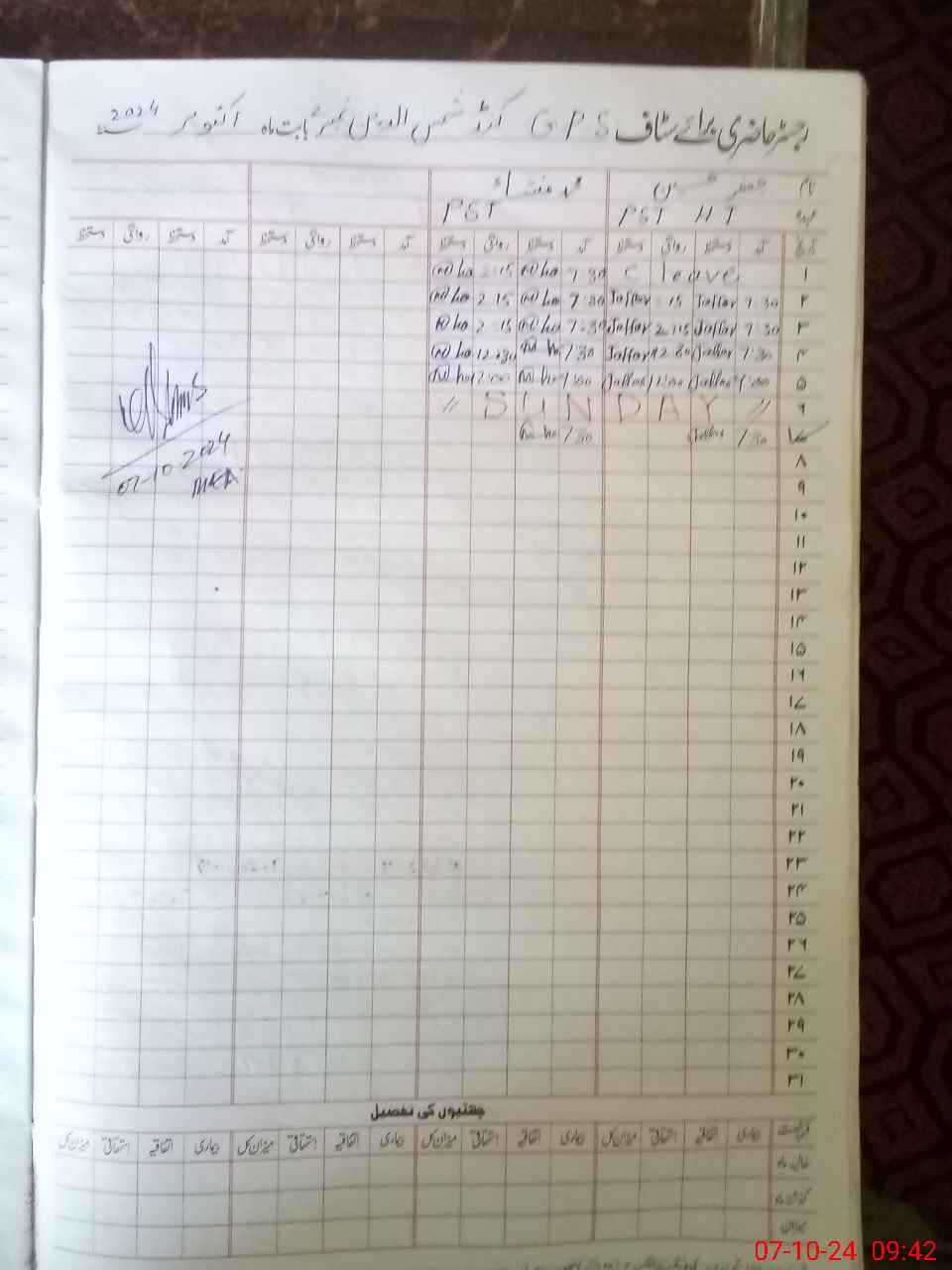 | CNIC | Full Name | Designation | R/C | Absence During Last Calender Month |