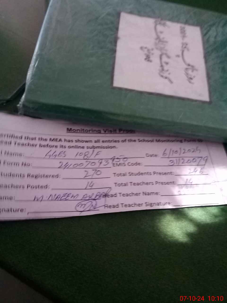 | EMIS Code: 31120079 | Name of School: GGES CHAK NO 108/F | |||
