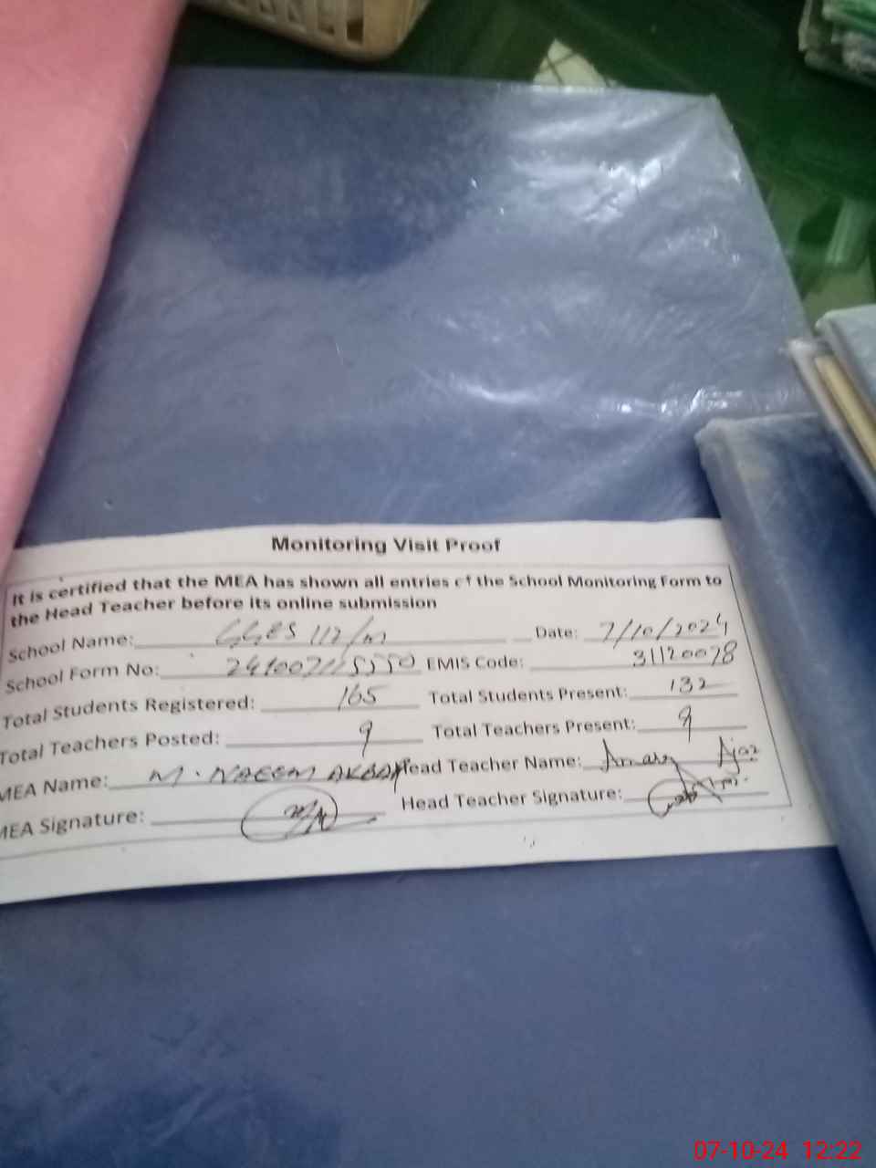 | EMIS Code: 31120078 | Name of School: GGES CHAK NO. 112/M | |||