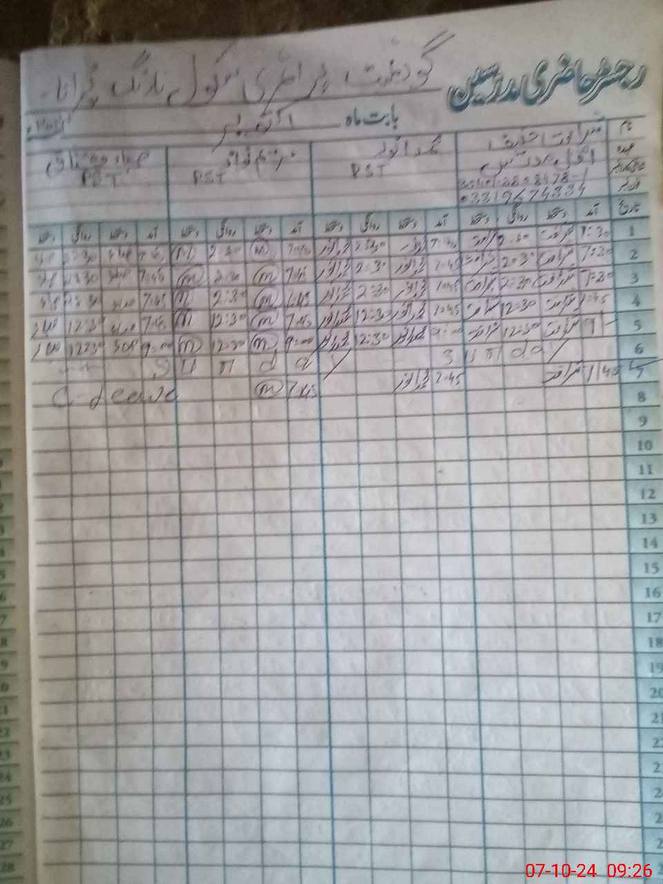 | Name: SH**** HA**** Designation: (School Headmaster's/Headmistress's) PTC/JV Phone/Cell Number: 03**** |