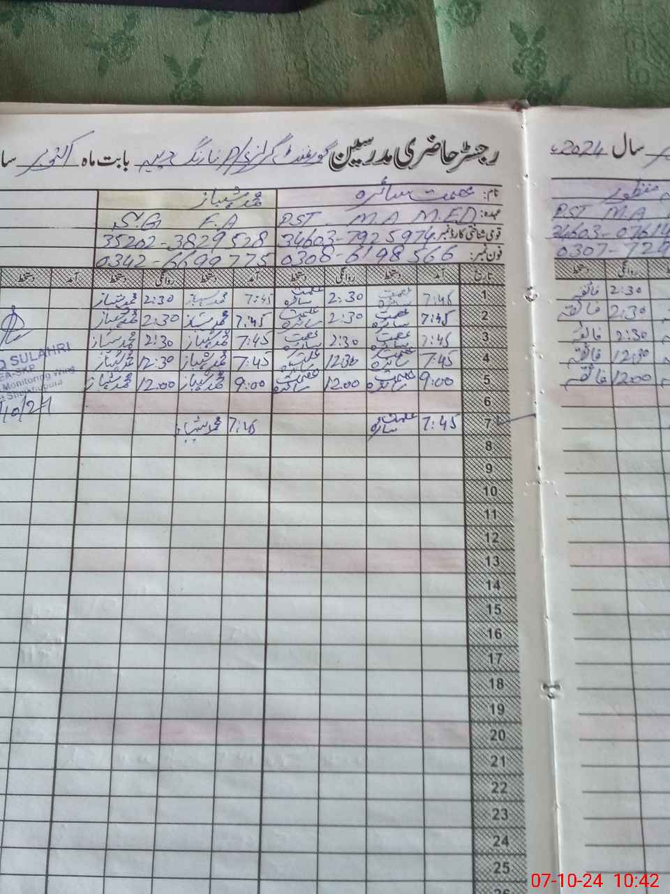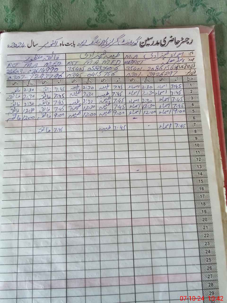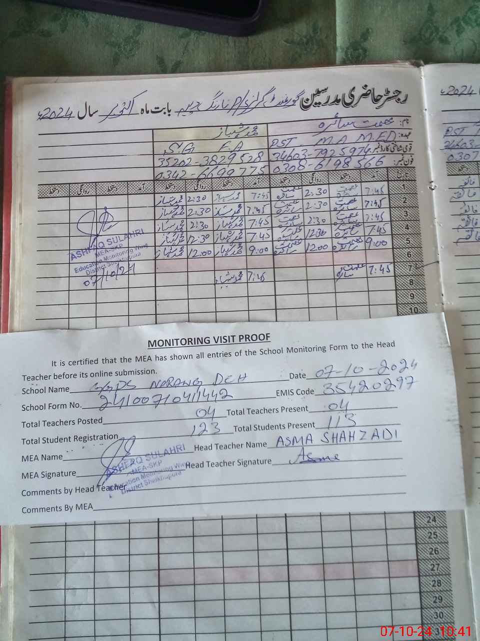 | Name: AS**** SH**** Designation: (School Headmaster's/Headmistress's) PST Phone/Cell Number: 03**** |