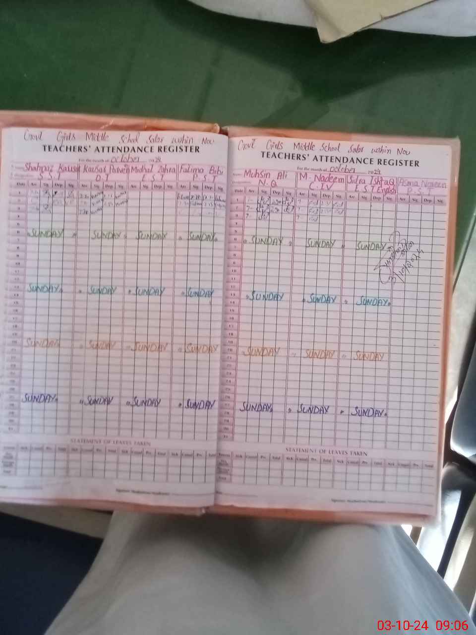 | 36**** | Mi**** Za**** | 3 | 1 | 0 | 0 | 0 | 0 | 0 | 0 | 0 | 0 | 0 | Absent (Un-Authorized) |
